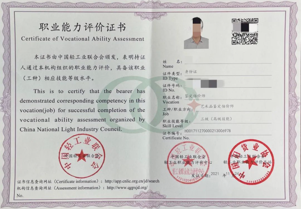 职业定义:对二次流通的商品、积压闲置物品、执法部门提供的罚没物品、抵债物资、抵押物资、抵押物品收藏品、古玩、字画等鉴估物进行鉴定,并估算其价值的人员。(国家职业大典里职业唯一从事收藏品、古玩字画鉴定的职业工种)